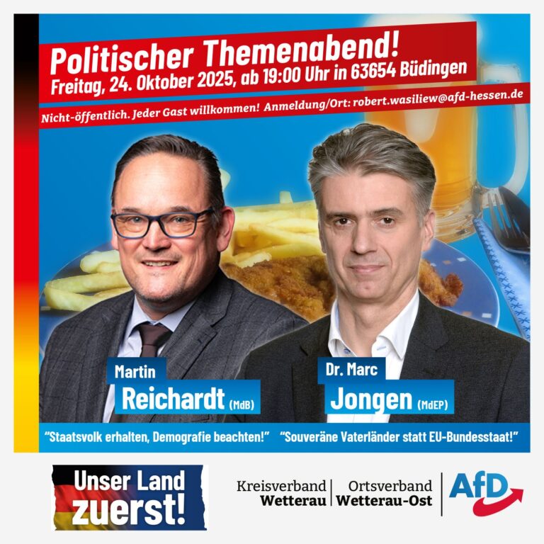 Abonnieren Sie unseren Newsletter und bleiben Sie über aktuelle Veranstaltungen, Beiträge und Aktionen der AfD in Hessen auf dem Laufenden.