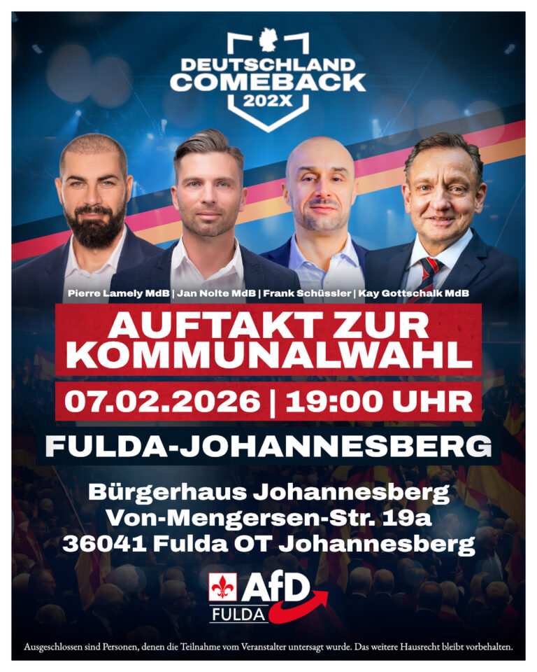 Abonnieren Sie unseren Newsletter und bleiben Sie über aktuelle Veranstaltungen, Beiträge und Aktionen der AfD in Hessen auf dem Laufenden.