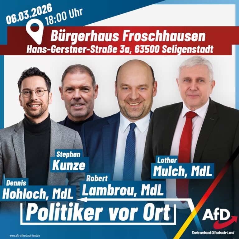 Auf dieser Seite können Sie sich über die Arbeit der Alternative für Deutschland in Hessen informieren, Veranstaltungen und aktuelle Pressemitteilungen einsehen.